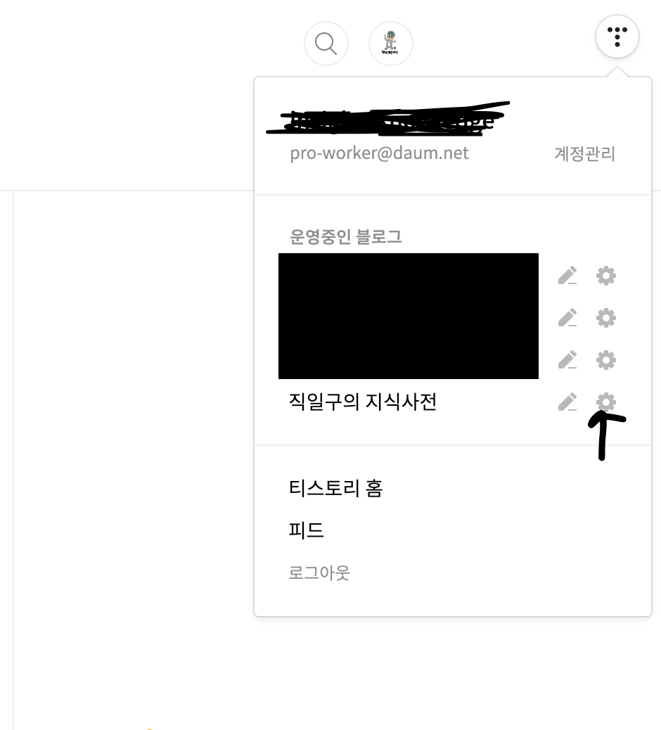 1. 티스토리의 설정 부분을 클릭한다.