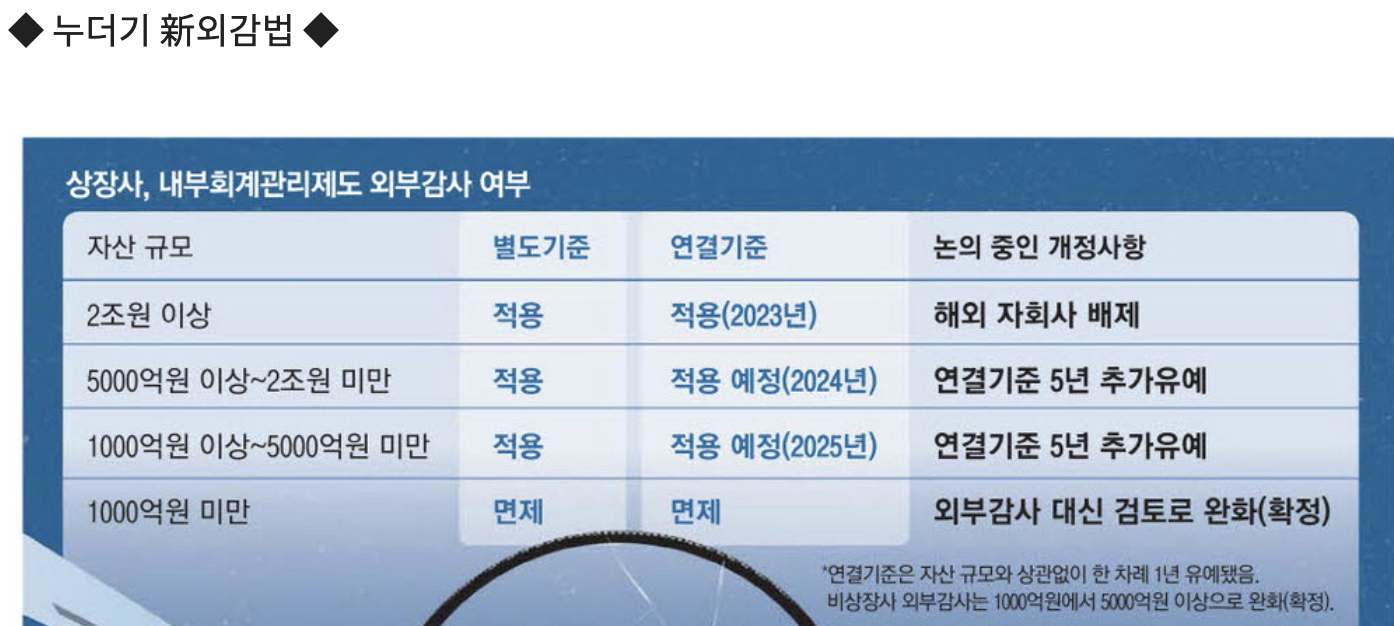 종종 경제뉴스 또는 사회뉴스에 연결내부회계관리제도 면제, 또는 유예 논의, 회계 개혁 수포로 돌아간다 등의 뉴스가 나오는 것을 볼 수 있습니다.