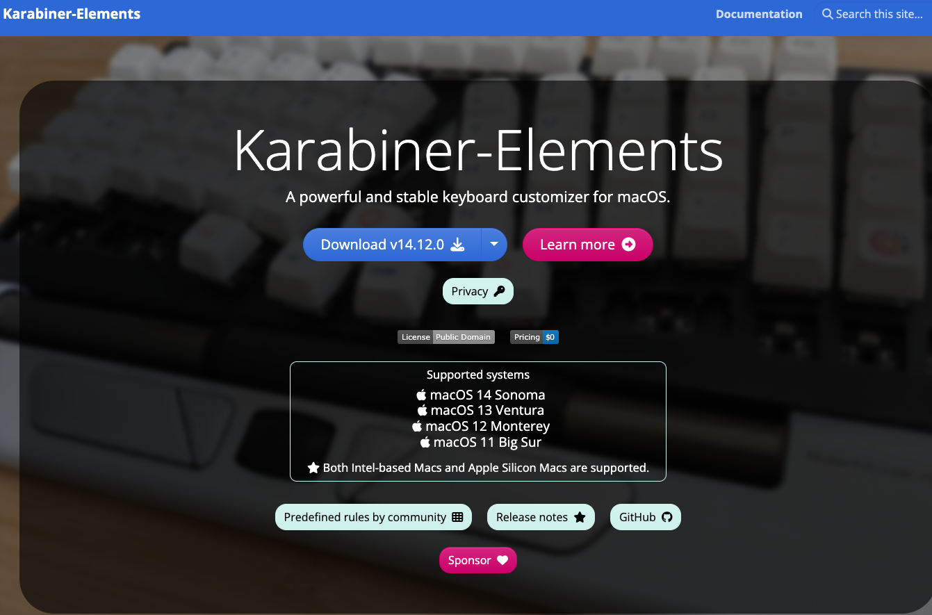 2. 설치하고 나면, 맥에서 시스템 설정 ?개인 정보보호및 보안 > 입력모니터링 > 입력모니터링에서 karabiner 관련항목 권한 모두 허용 으로 설정