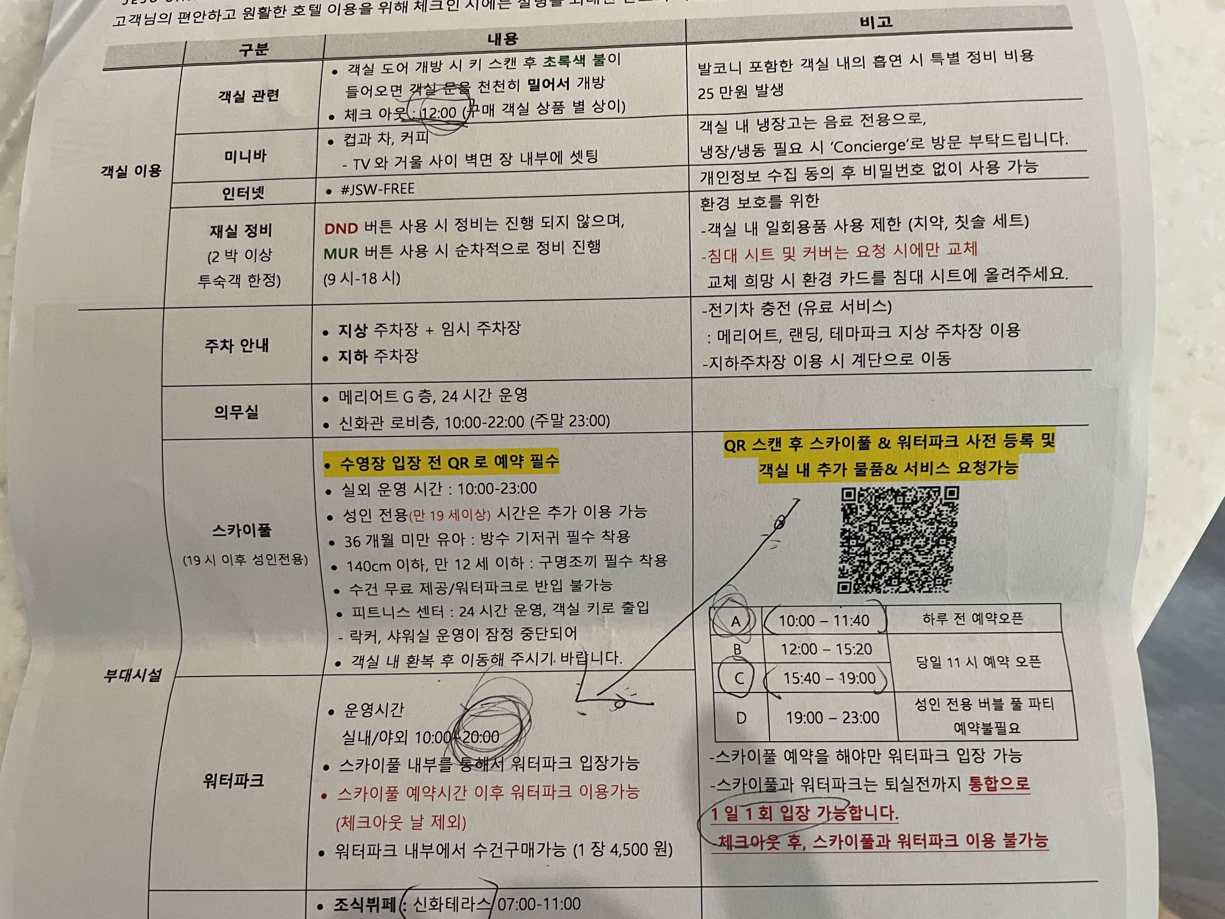오전 10시부터 워터파크 이용하고 스카이풀은 3시부터 이용하고 싶을수도 있을텐데, 워터파크를 이용하기 위해선 스카이풀 A시간대로 예약을 해야만 워터파크 입장이 가능하여 스카이풀 사용기회는 그냥 날려버리는 게 됩니다.