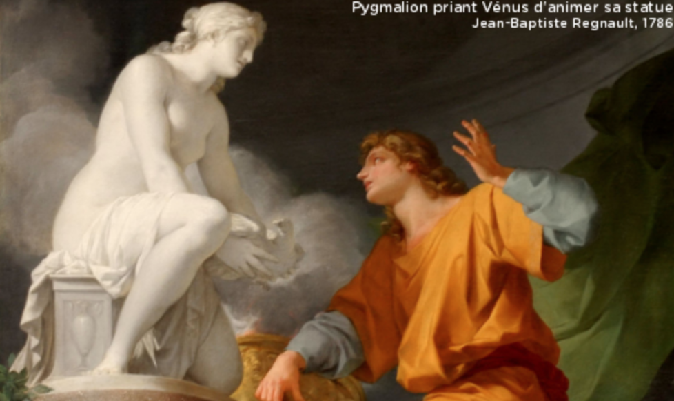 피그말리온이라는 명칭은 그리스 신화를 수록한 고대 로마의 오비디우스의 《변신이야기》 제10권에 나오는 피그말리온 이란 인물에서 유래되었는데,