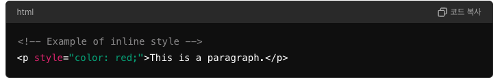 HTML 요소에 직접 적용된 인라인 스타일은 매우 높은 우선순위를 가집니다.