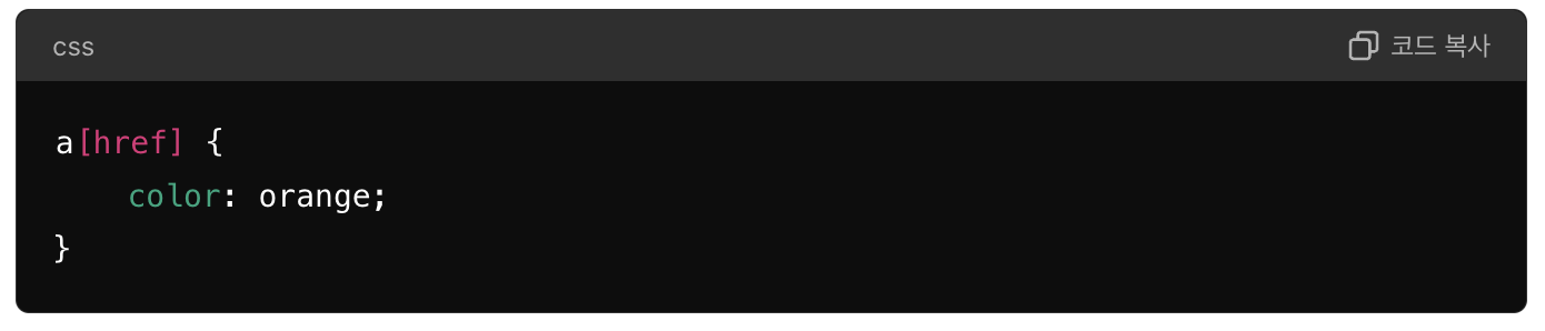 5. 속성 선택자: 특정 속성을 가진 요소를 선택합니다.href 속성이 있는 모든 a 요소를 선택합니다