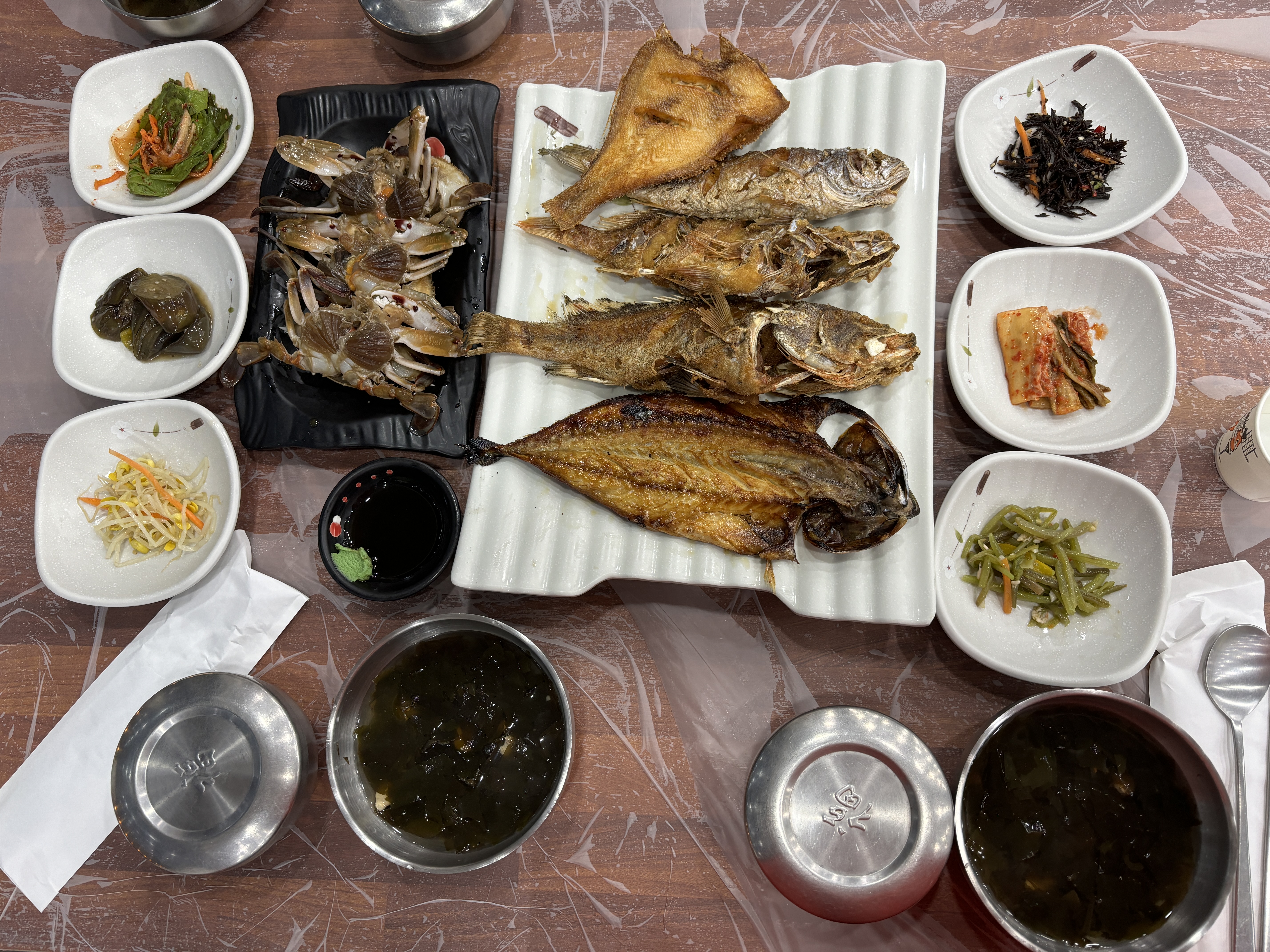 그런데 정체모를 고등어와 조기 사이에 놓여진 저 생선 2마리는 구운 것이 아니라 바싹 튀겨서 나왔다.