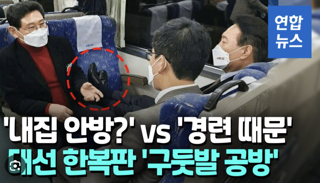 후보시절부터 구둣발을 기차 좌석에 올리고 타는 몰상식한 윤석열 같은 인간을