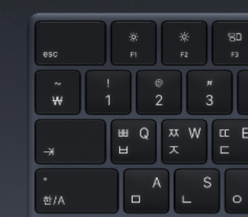 그런데, 맥북에서는 한글키보드에 백틱이 보이질 않는다. 윈도우랑 동일하게 숫자1 왼쬭 버튼을 누르면 ₩ 원화가 표기된다.