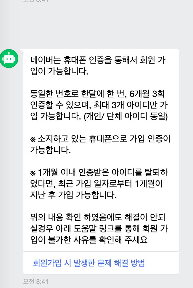 1. 이번달에 신규 아이디 하나 만들었다! --> 다음달까지 기다리셔야 새로운 아이디를 만들 수 있습니다.