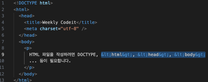 HTML 파일을 작성하려면 DOCTYPE, <html>, <head>, <body>