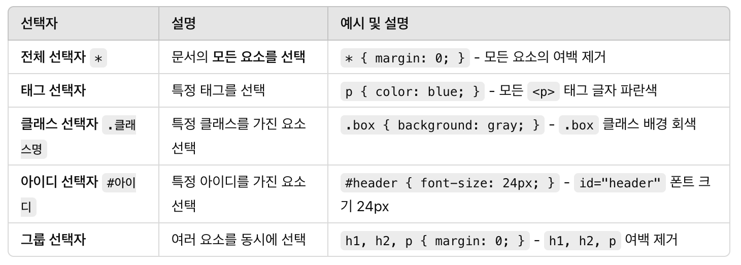 🔹 CSS 선택자의 종류와 예시
