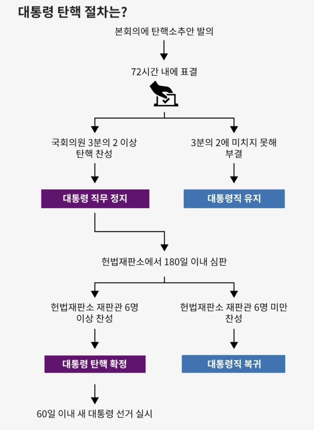 헌법 재판관 중 6명 이상이 탄핵 인용에 찬성할 경우 윤 대통령은 선고 즉시 대통령직에서 파면되며,