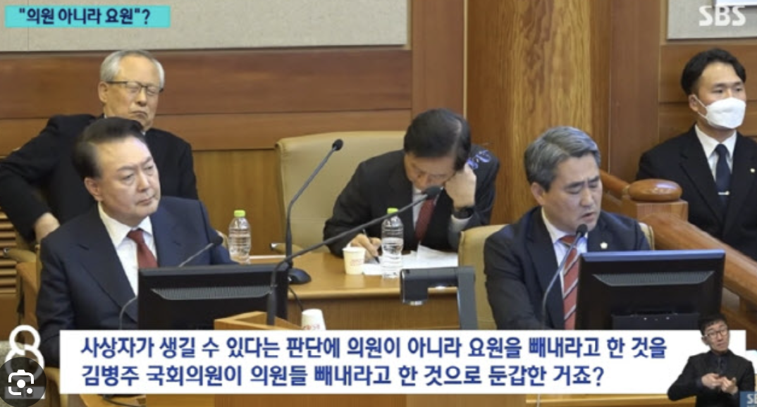 - 군인들이 잘못 이해했나? 국회의원 대신 '요원'을 철수시키려는 지시였다면, 이를 모든 군인들이 '의원을 끌어내라'고 해석했다는 것은 비상식적이다.