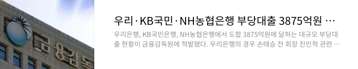 우리은행, KB국민은행, NH농협은행에서 도합 3875억원에 달하는 대규모 부당대출 현황이 금융감독원에 적발됐다. 우리은행의 경우 손태승 전 회장 친인척 관련 부당대출 적발 규모가 지난해 금감