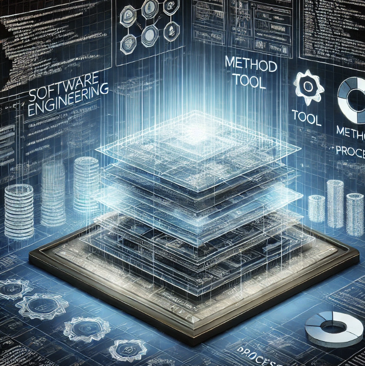 소프트웨어 공학(Software Engineering)은 소프트웨어 개발을 체계적이고 효과적으로 수행하기 위해 필요한 원칙, 방법론, 도구 등을 연구하는 학문입니다. 소프트웨어 개발은 단순히 코드를 작성하는 것이 아니라, 개발 과정 전반을 효과적으로 관리하고 최적화하는 과정이 필요합니다. 이를 위해 **계층화 기술(Layered Technology)**이라는 개념이 등장하였으며, 소프트웨어 개발의 기초가 되는 **3대 요소(Method, Tool, Process)**로 구성됩니다.