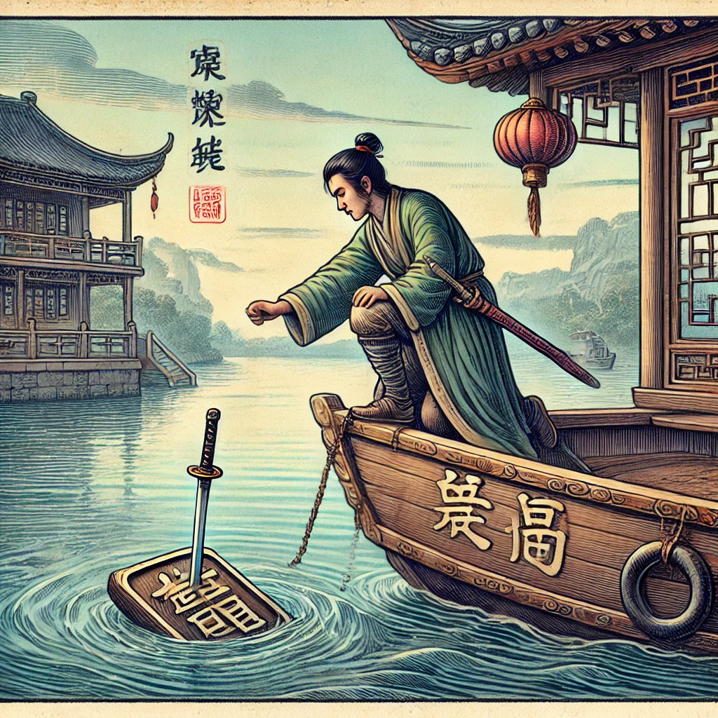 → **"칼을 물속에 빠뜨리고 배에 표시를 해두었다가 나중에 찾으려 한다"**는 의미로, 상황이 변했음에도 불구하고 융통성 없이 기존 방식만 고수하는 어리석음을 비유하는 사자성어입니다.