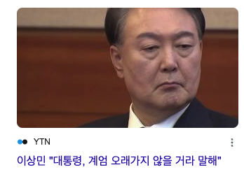 - 국가의 최고 권력이 계엄이라는 엄청난 결정을 그렇게 가볍게 내렸다는 것 자체가 대통령으로서의 자격이 없음을 입증한다.