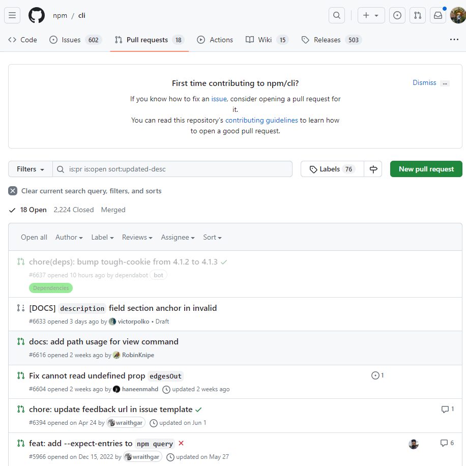 - Open: 코드 리뷰 및 추가 작업이 필요한 상태