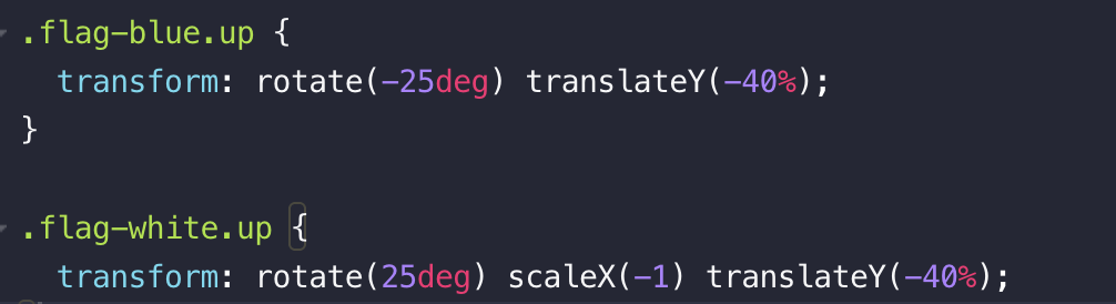 이런식으로 하면 .up 상태가 될 때 이미지가 움직이고, 아닐 때에는 다시 원래자리로 복귀하여, 마우스 클릭시마다 깃발이 움직이는 효과를 만들 수 있습니다.