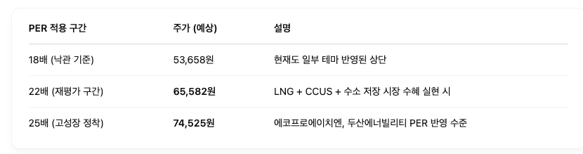 | 📊 기준 | 12배 | 35,800원 | 알래스카 LNG 수주 + 탄소포집 실적 반영 |