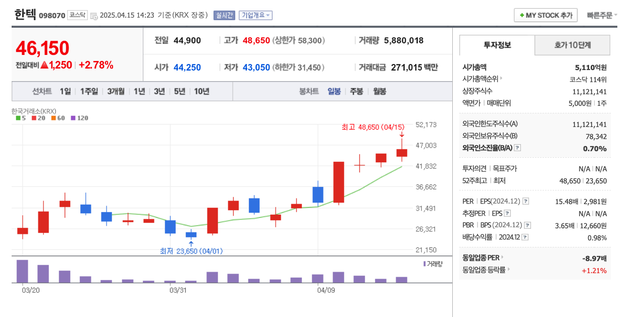 한텍이 LNG와 CCUS 실질 매출을 본격화하면 **"에너지 전환 인프라 기자재 대표기업"**으로 PER 25배 이상 고평가 재편, 주가는 7만원대 진입도 충분히 예측 가능합니다.