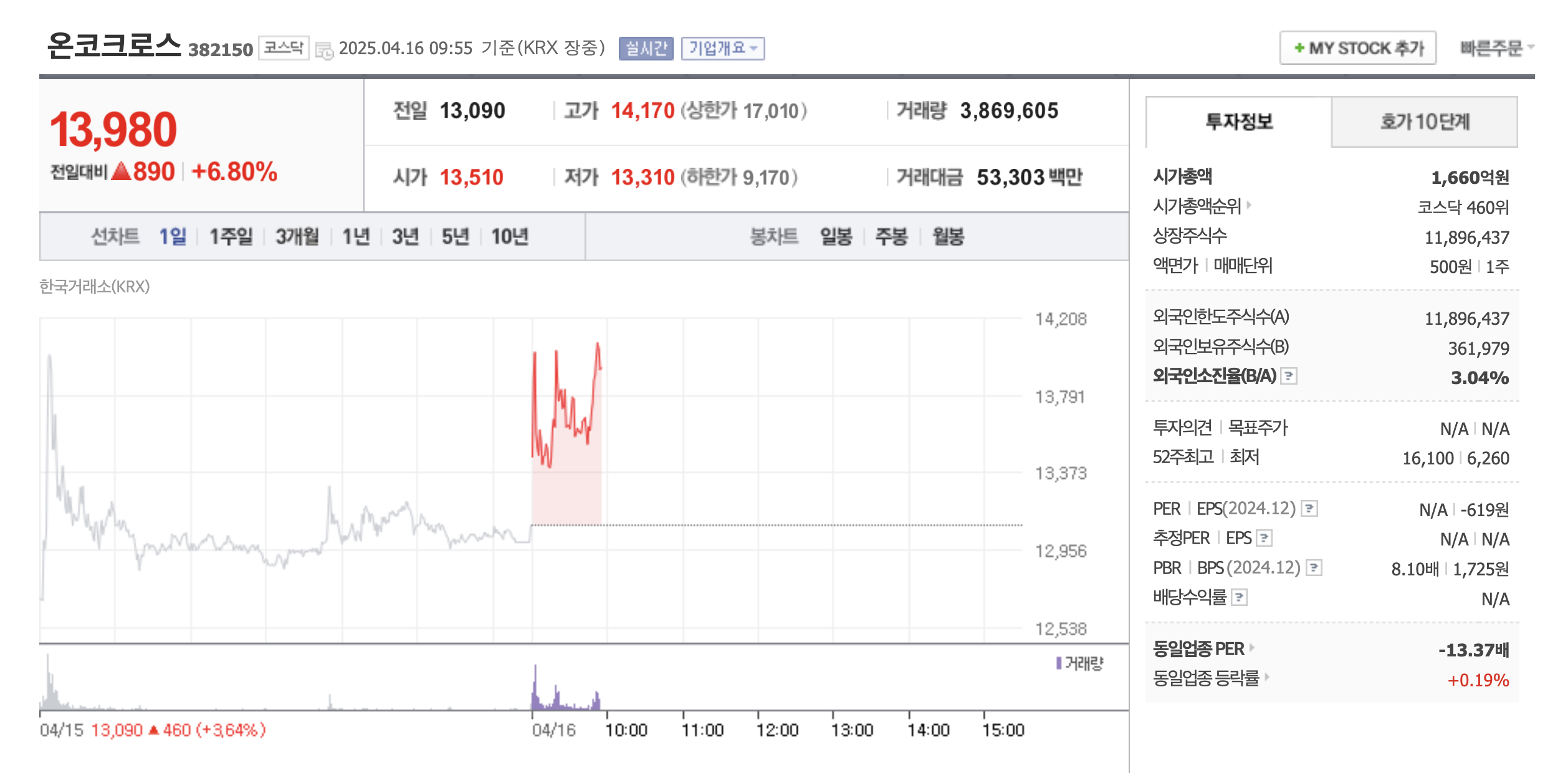5. 현재 주가와 기술적 분석 (2025.04.16 기준)