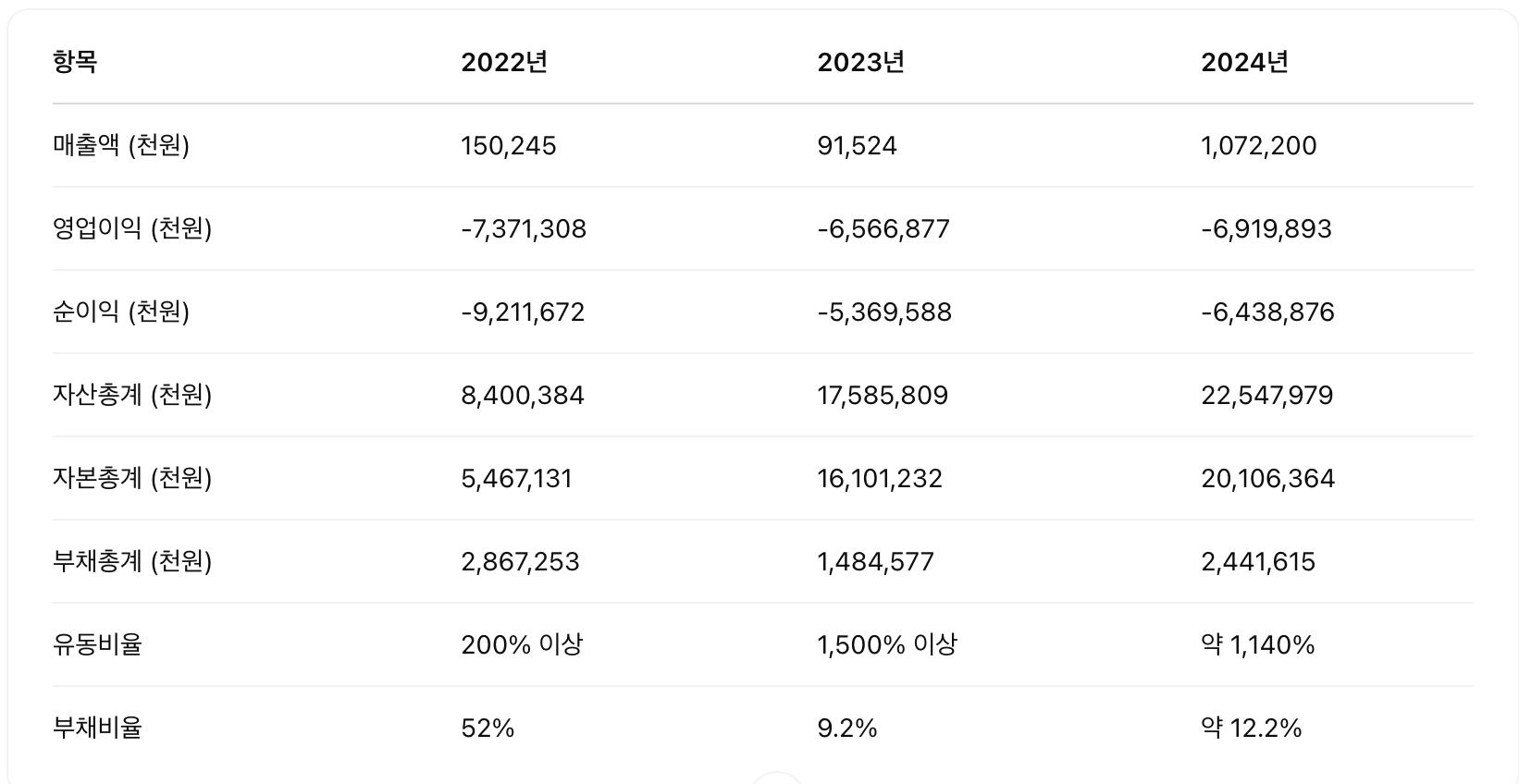 | PER | 측정 불가 (적자) |
