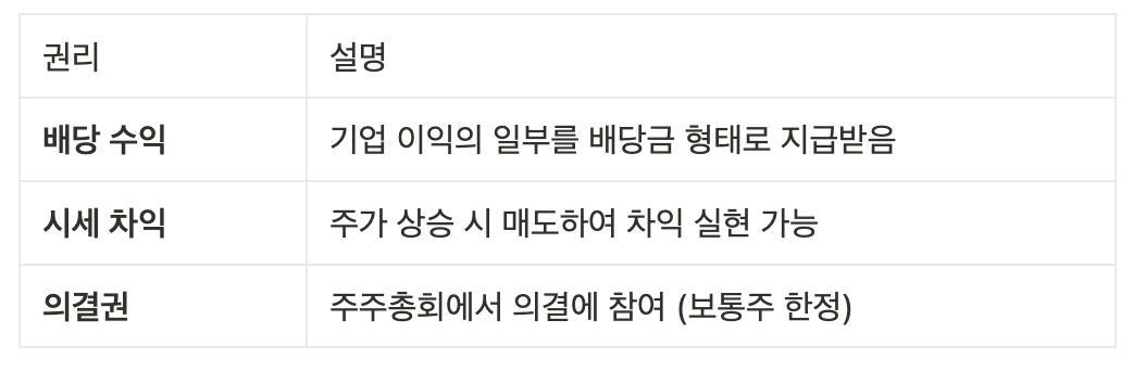 또한 보통주의 경우에는 주주총회에서 의결권을 행사할 수 있는 권리도 주어지므로, 단순한 투자 수단을 넘어 기업의 지배구조에 일정 부분 참여하는 자격도 가지게 됩니다.