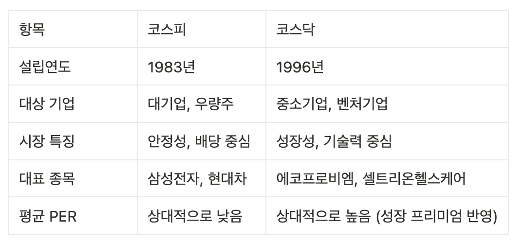 코스피는 우량 대기업 중심의 안정적 시장, 코스닥은 기술주 중심의 성장 시장으로 구분되며, 각각의 시장에는 다른 성격의 기업들이 상장되어 있어 투자자 성향에 맞는 선택이 중요합니다.