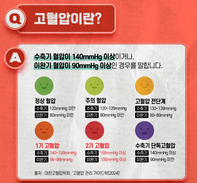 - 정상: 수축기 120mmHg 미만, 이완기 80mmHg 미만