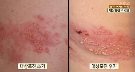 - 몸의 한쪽에 띠 모양의 발진이 나타날 때