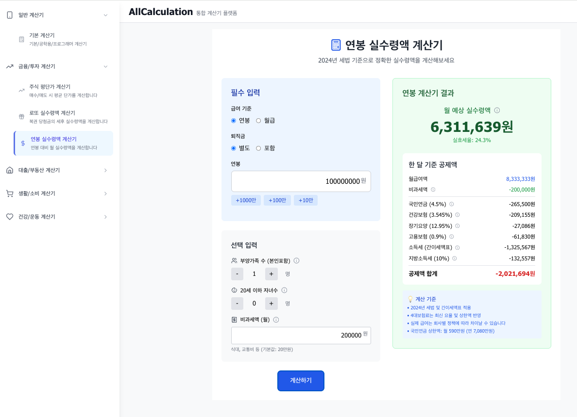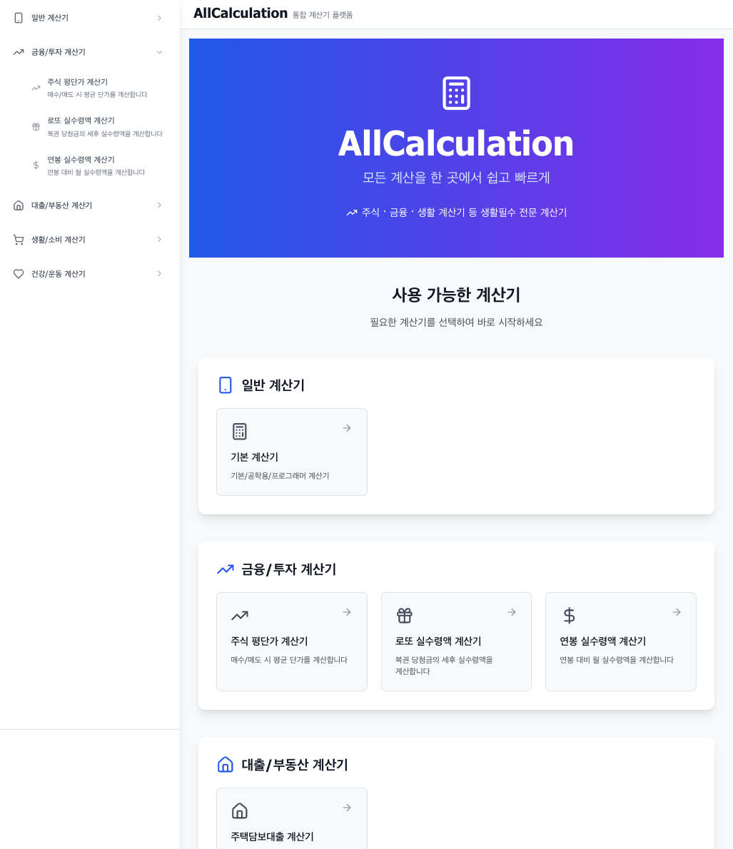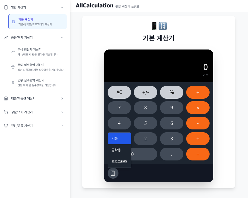 ##반응형 웹사이트 (https://allcalculation.kr/)