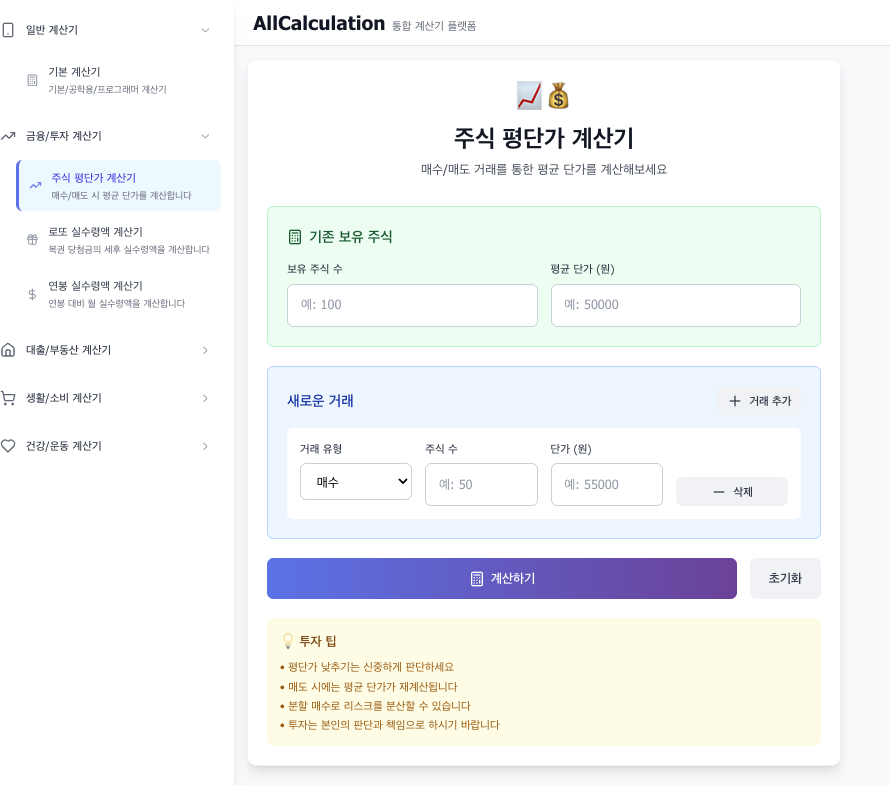 주식, 금융, 대출, 생활 등 모든 계산을 한 곳에서!
