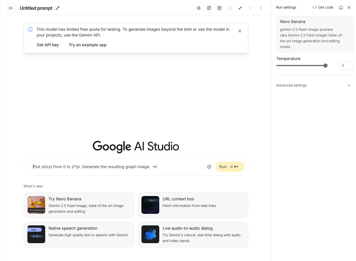 AI Studio는 최신 구글 모델들을 무료로 체험할 수 있는 일종의 “실험실”이에요.