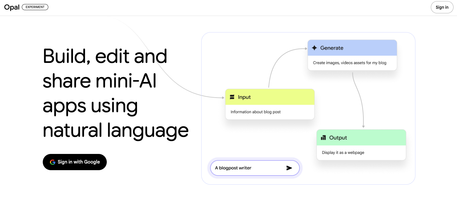 4. Opal – 무코드 AI 앱 빌더