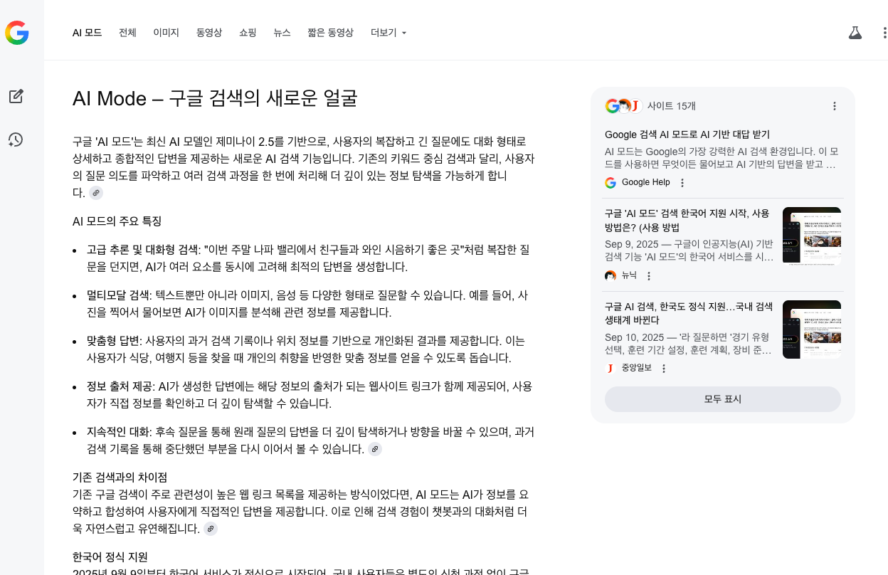 5. AI Mode – 구글 검색의 새로운 얼굴