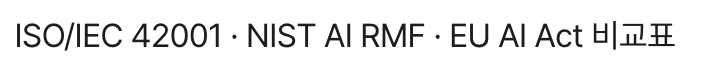 ISO/IEC 42001 · NIST AI RMF · EU AI Act 비교표