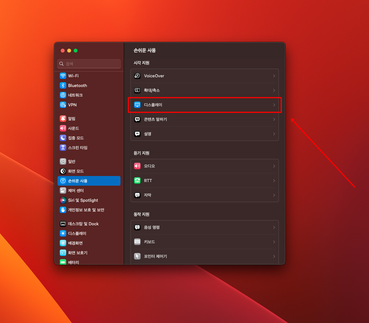 2. 손쉬운 사용 클릭 > 디스플레이 클릭