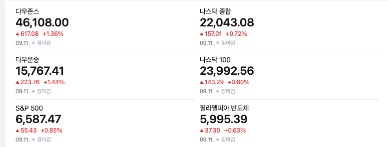 미국 증시(현지시각 9월 11일 기준) 브리핑