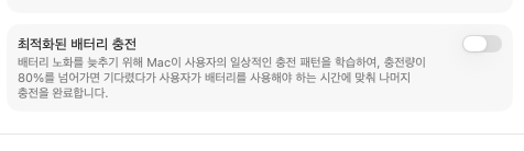 최적화된 배터리 충전을 켜놓아야 맥북 배터리 오래쓴다고 하는데,