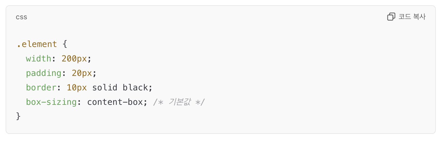 [지식루프의 웹개발공부] CSS의 box-sizing CSS에서 box-sizing은 요소의 크기를 계산하는 방식을 정의하는 속성입니다. 이 속성을 통해, 요소의 width와 height가 포함하는 영역이 달라지며, 레이아웃을 더 직관적으로 제어할 수 있습니다. box-sizing에는 주로 두 가지 값이 사용됩니다:1. content-box (기본값)요소의 width와 height가 내용 영역(content area)의 크기를 의미합니다. 즉, padding, border는 이 값에 포함되지 않고, 요소의 최종 크기에 추가됩니다.예를 들어, width: 200px인 요소에 padding: 20px과 border: 10px을 추가하면 최종 요소의 크기는 다음과 같습니다:가로 크기: 200px (content) + 20px (left padding) + 20p.. IT공부 2024.10.21